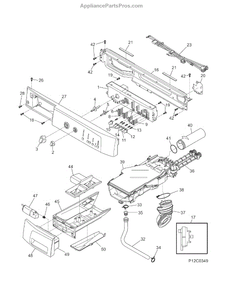 Connects the detergent dispenser to the wash tub in your washer. Replace if cracked, leaking, or causing water damage to other components during cycles.