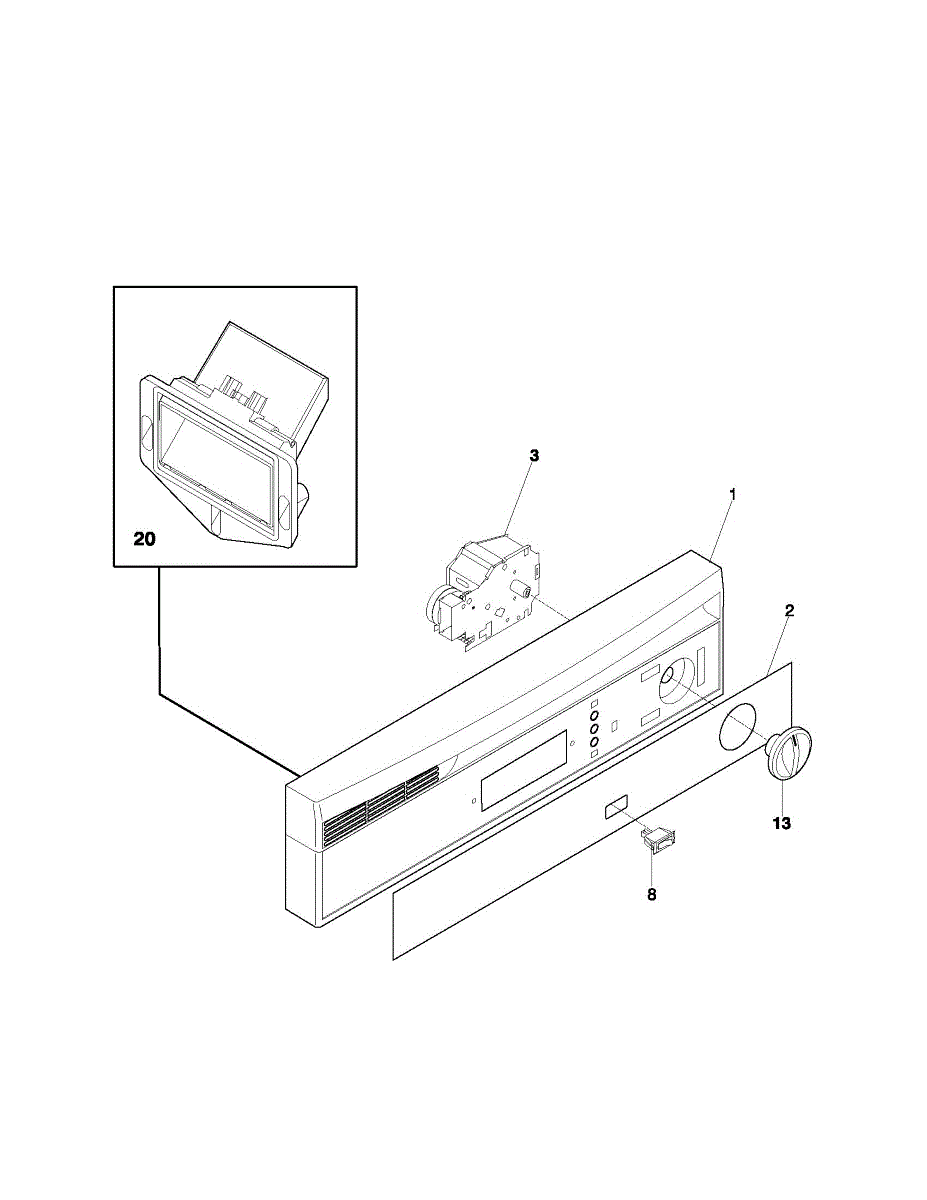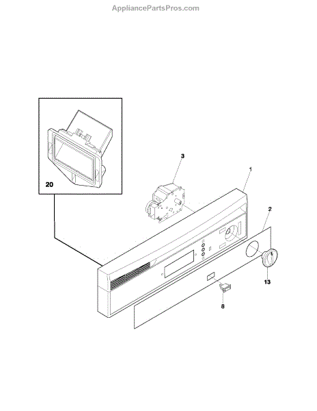 This control panel insert is the molded trim piece that fills the front of the appliance's control console, restoring a clean, finished appearance and giving buttons and displays a stable mounting surface. What it does: