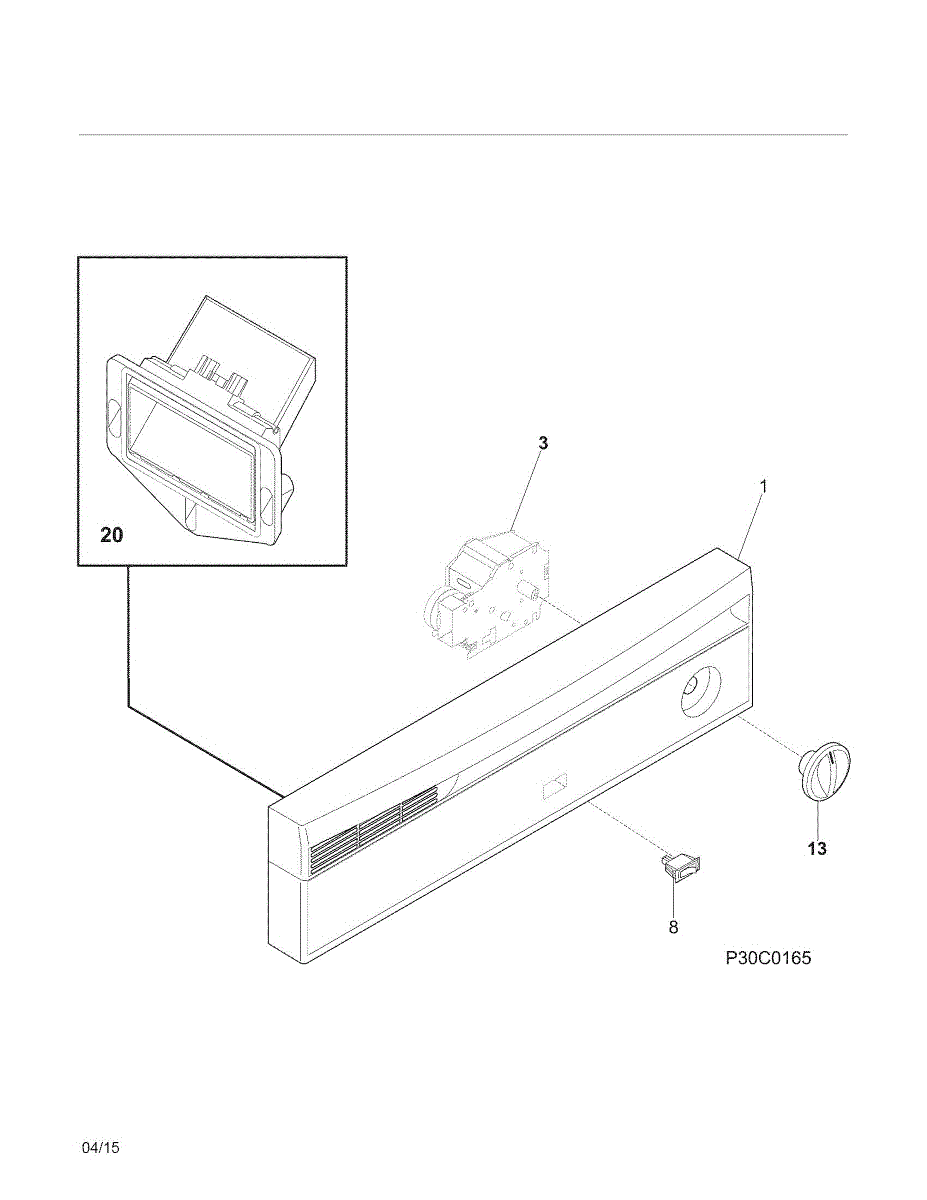 • Provides the front console and button surface for the appliance's controls