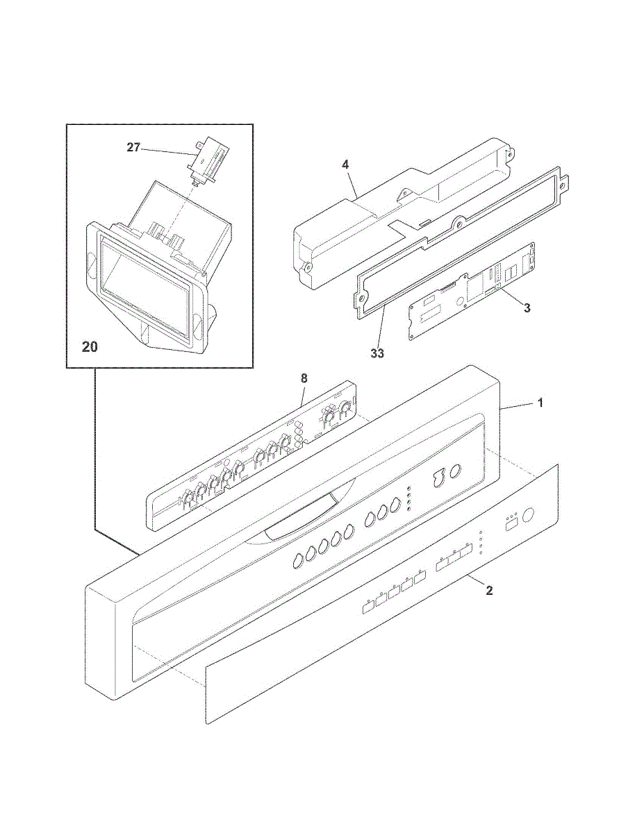 Replacement control panel insert for your dishwasher. This cosmetic component covers the control area and may need replacing if cracked, faded, or damaged.