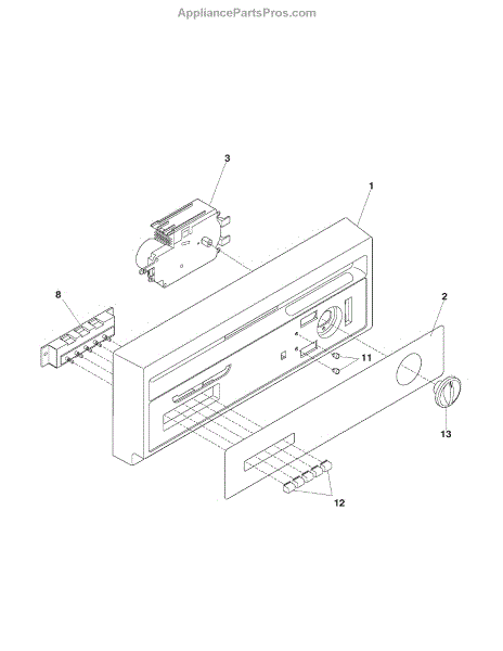 White control panel touch pad for dishwasher door. Replaces cracked, broken, or worn front panels. Mounts to top door section with screws.