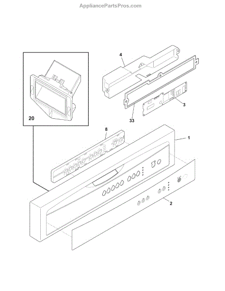 Replacement touch pad panel for your dishwasher's control interface. Installs on the front console. Needed when buttons are cracked, worn, or unresponsive.