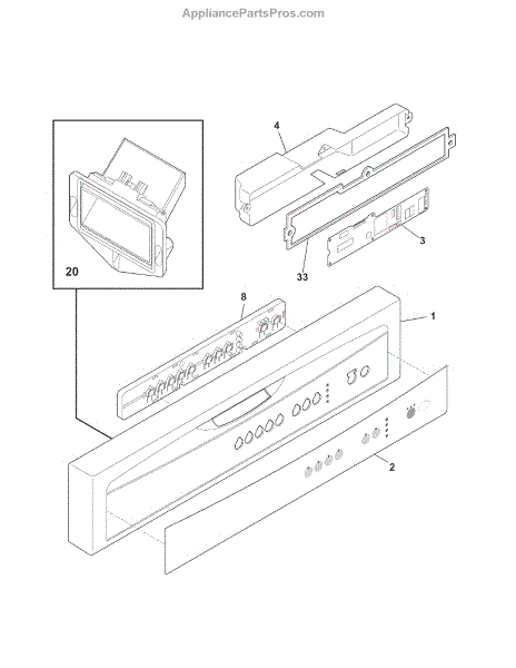 Replacement touch pad panel for your dishwasher's control interface. Installs on the front console. Needed when buttons are cracked, worn, or unresponsive.