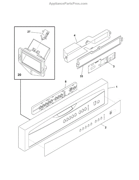 Replacement touch pad panel for your dishwasher's control interface. Installs on the front console. Needed when buttons are cracked, worn, or unresponsive.