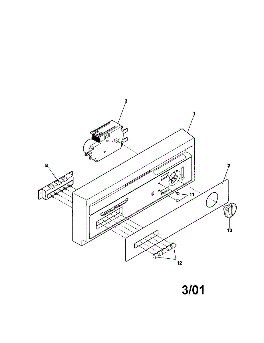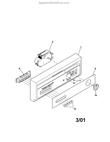 White control panel touch pad for dishwasher door. Replaces cracked, broken, or worn front panels. Mounts to top door section with screws.