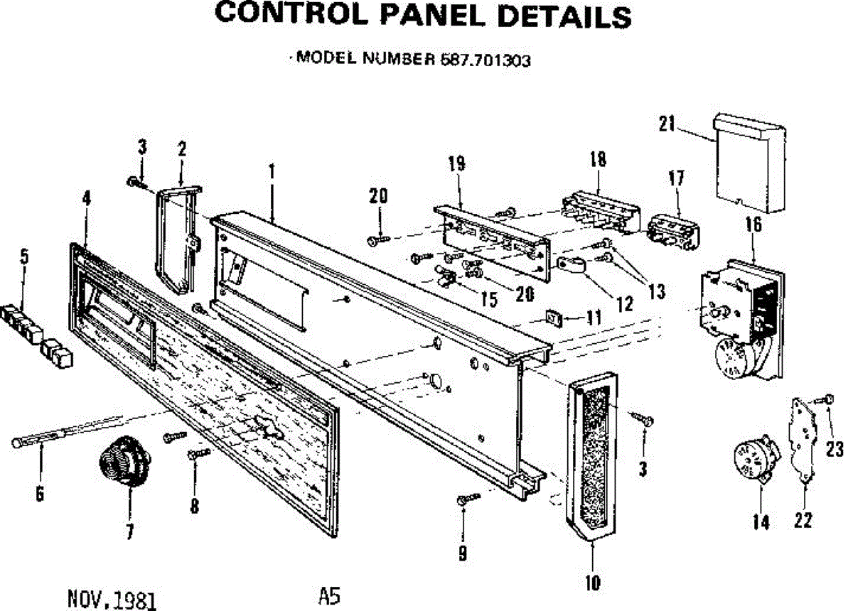 Parts for Kenmore 587.701303 (587701303, 587 701303): Control Panel Parts