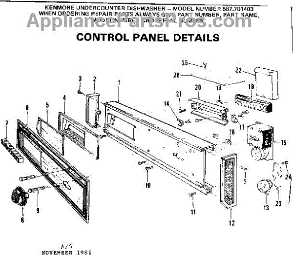 Parts for Kenmore 587.701403 (587701403, 587 701403): Control Panel Parts