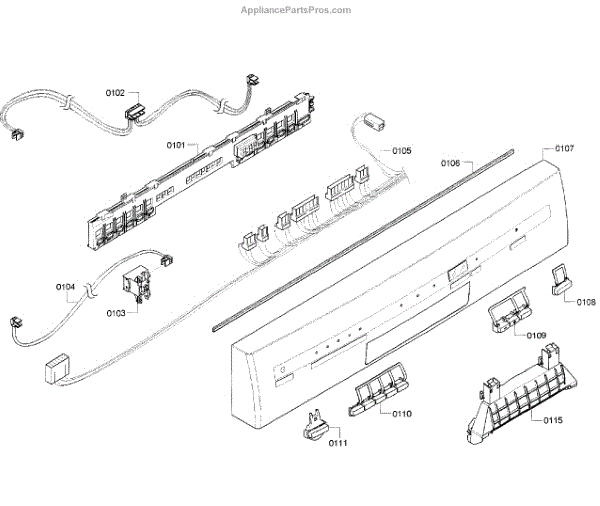 This facia panel is the front control console that covers and protects the dishwasher's user controls and display, restoring the appliance's appearance and providing a secure mounting surface for controls. What it does: