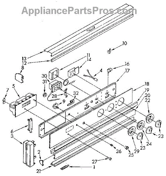 Black trim plate that fits around the range control knob. Replaces the original escutcheon when cracked, faded, or worn smooth making markings unreadable.