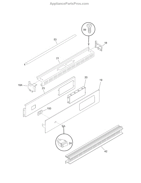 Oval-head square-drive screw secures interior and exterior oven panels, brackets, and trim. Replace worn, stripped, or missing screws for secure assembly.