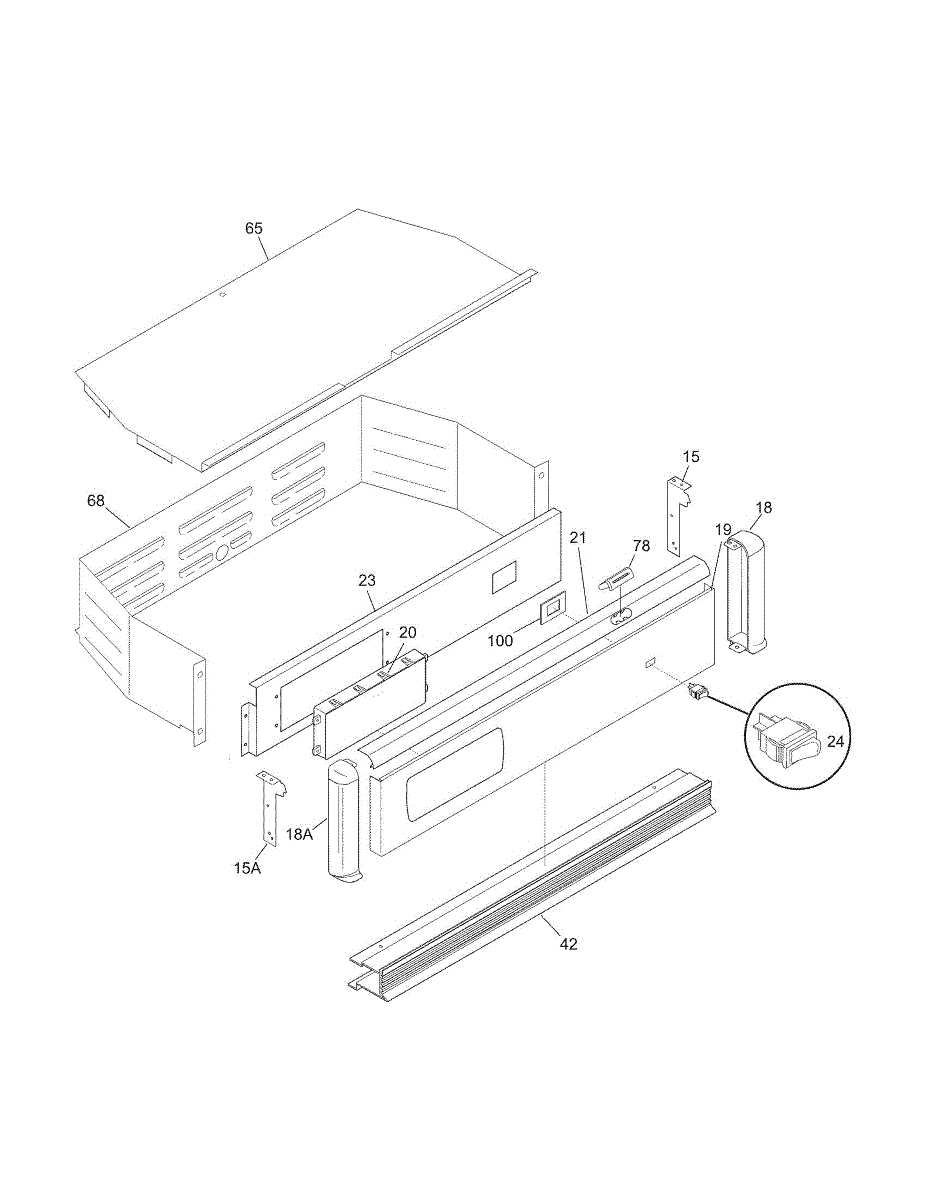 Black top trim piece for wall ovens. Covers the gap between the oven and cabinet for a finished look. Replace if cracked, chipped, or missing.