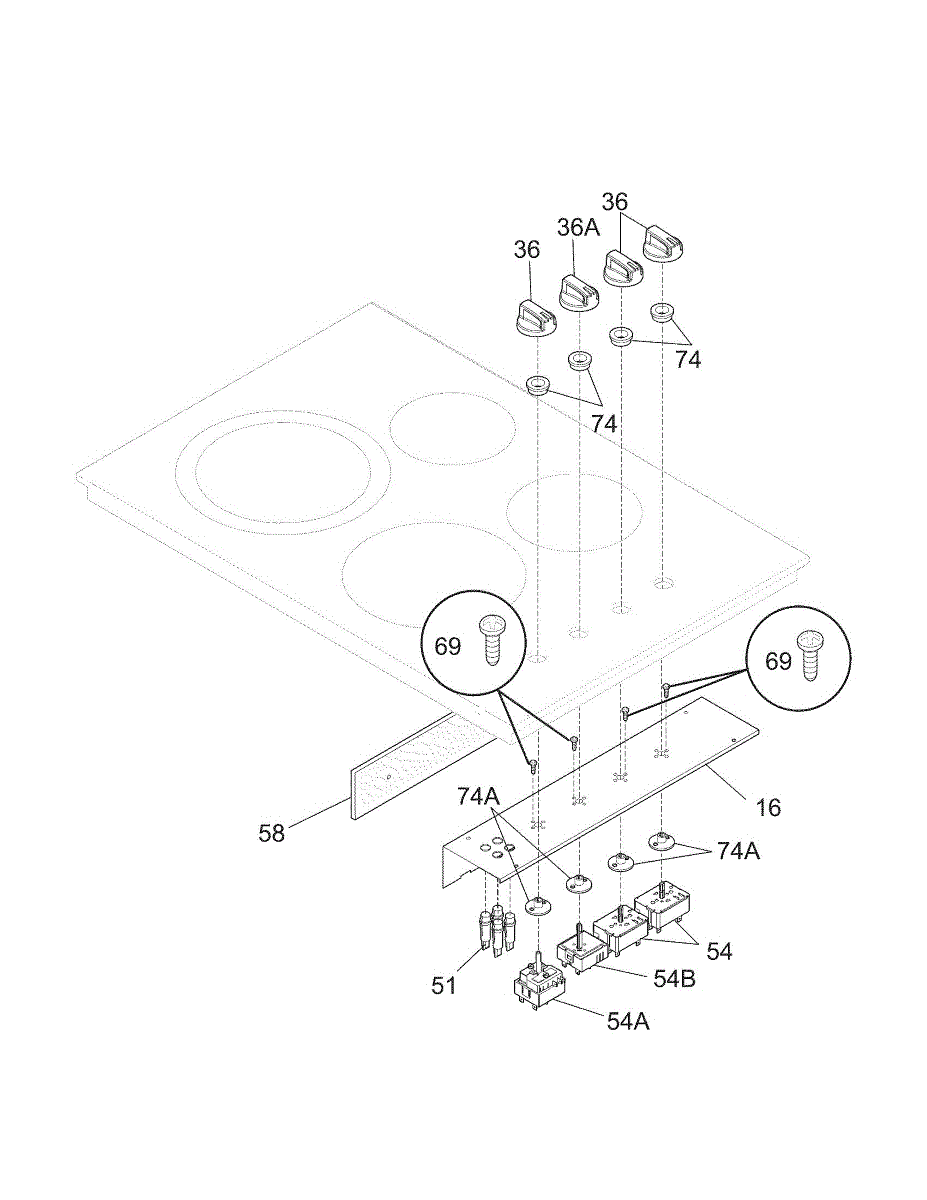 Burner won't heat or stays on high? This cooktop infinite switch controls element temperature settings. Moderate DIY repair taking 30-45 minutes.