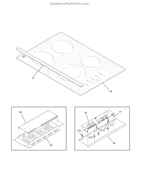Official repair parts list manual for your cooktop. Reference guide showing all available service parts, diagrams, and part numbers for ordering replacements.