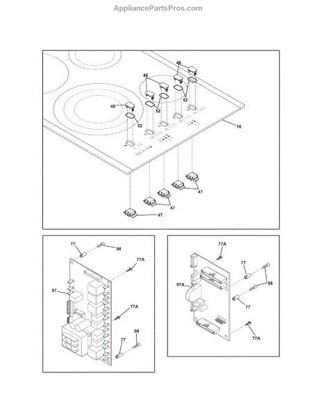 Replace your cracked, chipped, or broken cooktop glass top assembly. This surface component covers the heating elements and provides the cooking area.