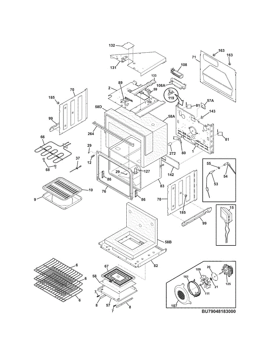 Rear panel back for ovens and ranges. Replaces cracked, damaged, or missing exterior back panels. Essential structural part for cabinet integrity.
