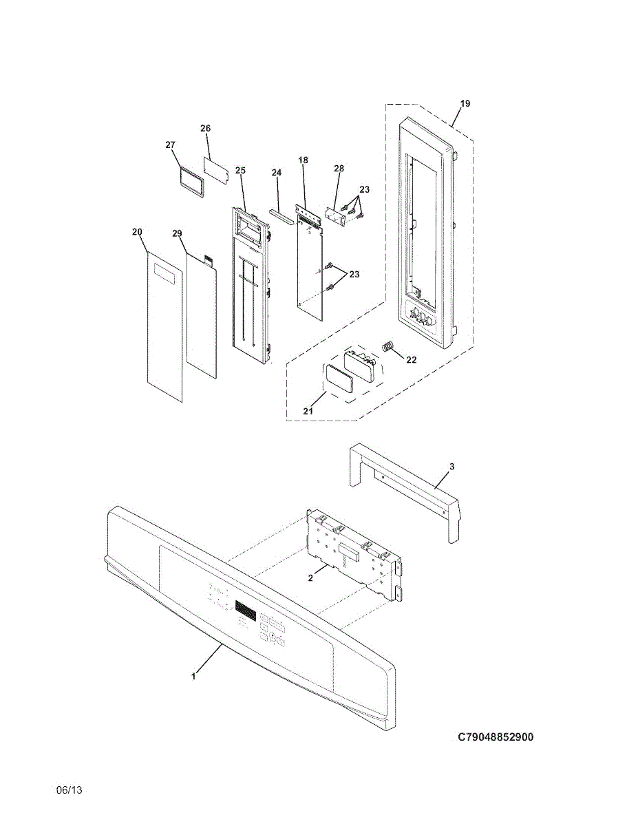 The Switch/Overlay Assembly is an OEM component compatible with select Frigidaire microwave models. It includes both the control panel switches and overlay graphics that operate the unit. This assembly allows for accurate input and operation of cooking times, power levels, and other functions.