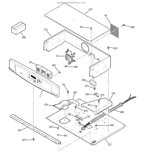 This control cooling fan assembly circulates air through the oven's control compartment to remove heat. By keeping the console and electronics cool during and after cooking, it helps prevent overheating and protects sensitive components.