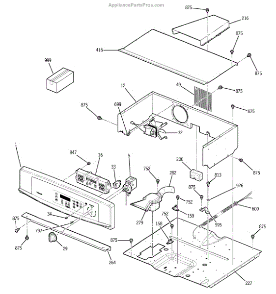 This control cooling fan assembly circulates air through the oven's control compartment to remove heat. By keeping the console and electronics cool during and after cooking, it helps prevent overheating and protects sensitive components.
