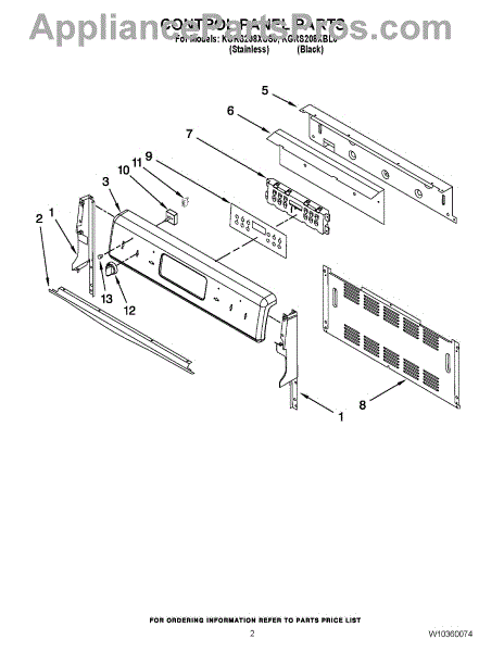 Parts for Kitchenaid KGRS208XBL0: 02 - Control Panel Parts