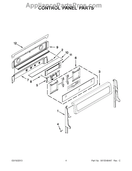 A cast white control console that houses and protects the appliance's control panel and buttons, restoring the unit's front appearance and providing a secure mounting surface for electronic controls. What it does: