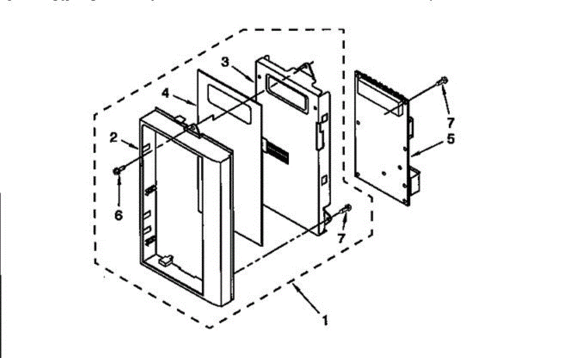 Mounting screw for microwaves. Secures door panels, handles, and internal components. Replace if stripped, missing, or damaged during repairs.