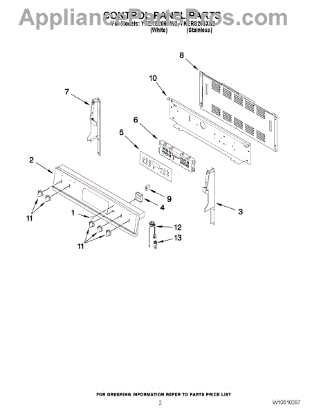 Parts for Kitchenaid YKERS206XS2: 02 - Control Panel Parts