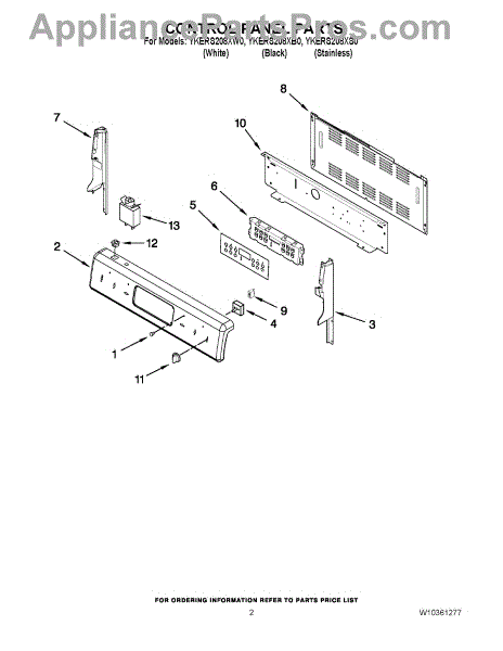 Parts for Kitchenaid YKERS208XB0: 02 - Control Panel Parts