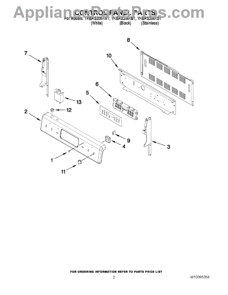 Parts for Kitchenaid YKERS208XS1: 02 - Control Panel Parts