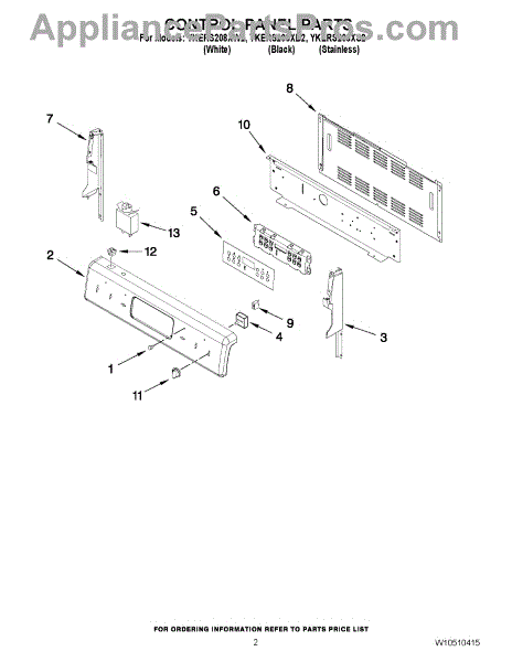 Parts for Kitchenaid YKERS208XS2: 02 - Control Panel Parts