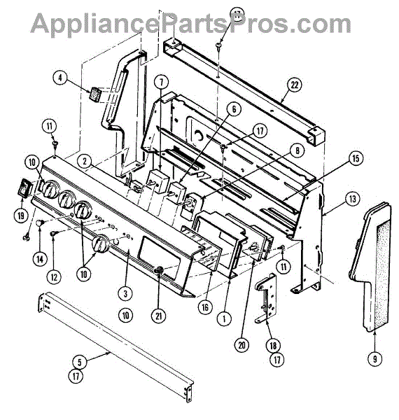 Parts for Magic Chef 3542XRW: 02 - Control Panel Parts