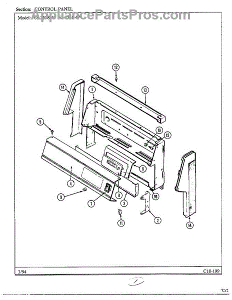 Parts for Magic Chef 68-2558-40: Control Panel Parts