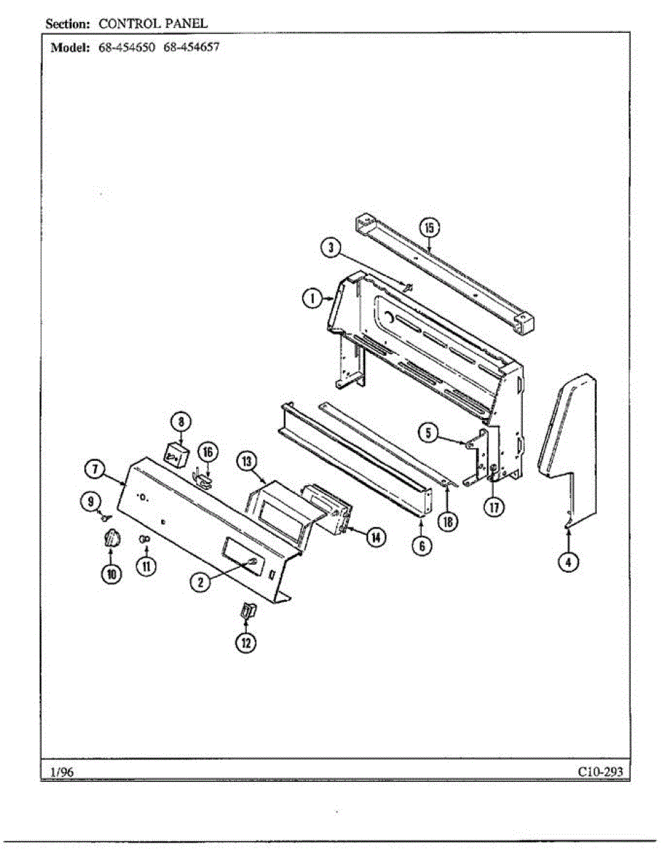 Parts for Magic Chef 68-454650: Control Panel Parts