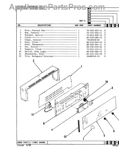Parts for Magic Chef 90FA-3KLX: 02 - Control Panel Parts