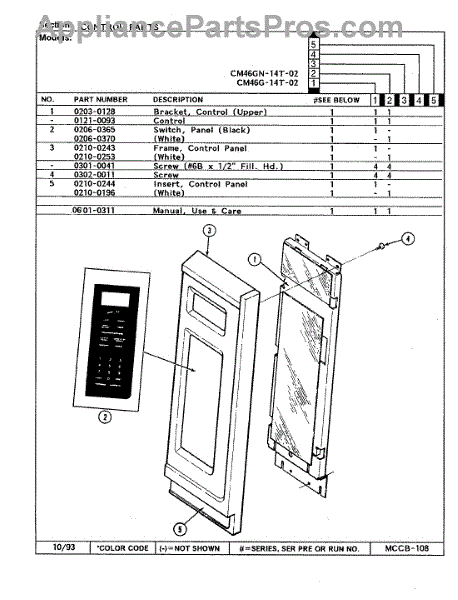 Parts for Magic Chef CM46GN-14T-02: 02 - Control Panel Parts