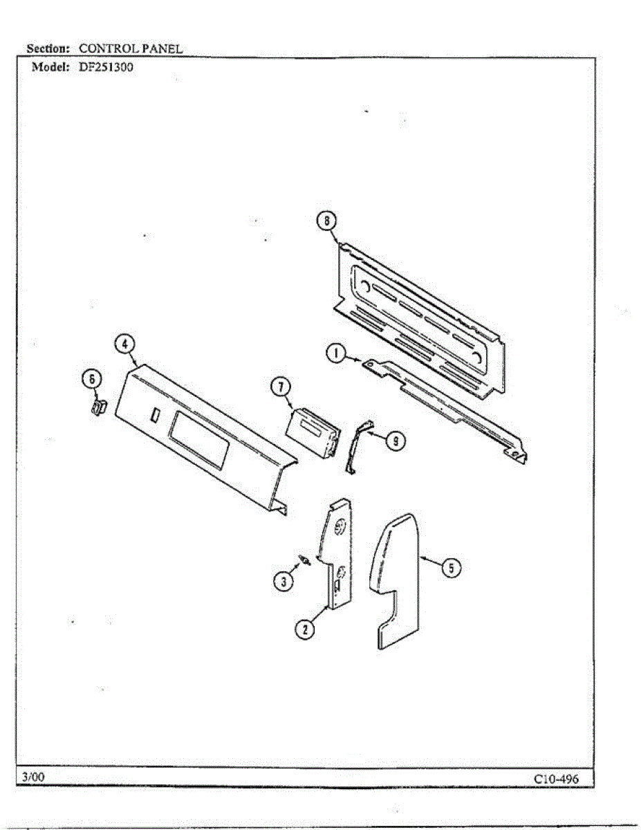 Parts for Magic Chef DF251300: Control Panel Parts