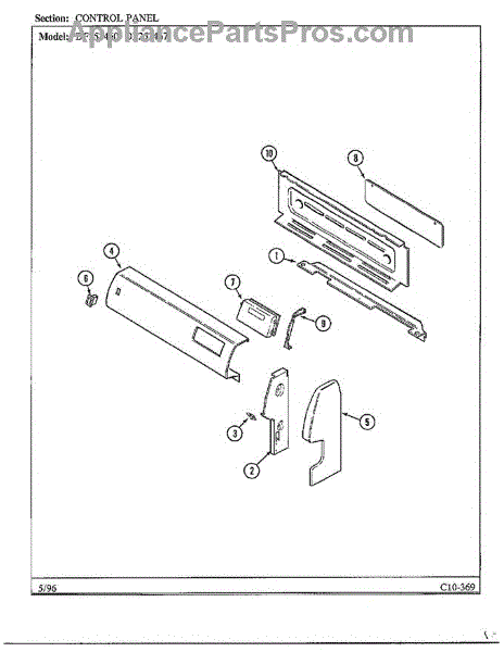 Parts for Magic Chef DF253460: Control Panel Parts