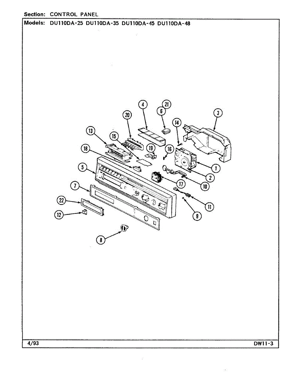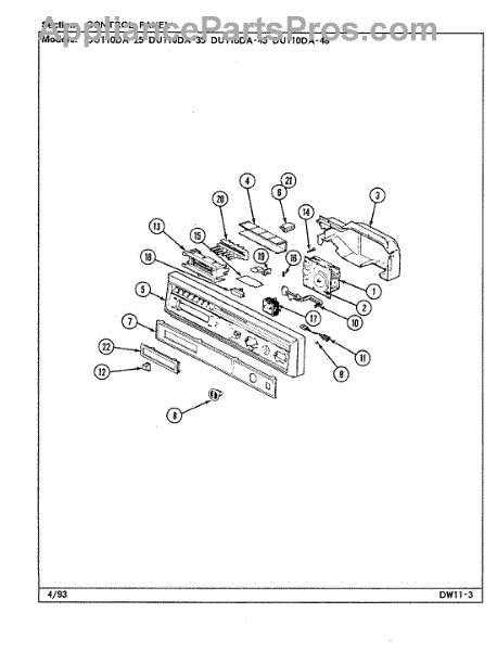 Parts for Magic Chef DU110DA-25: 01 - Control Panel Parts