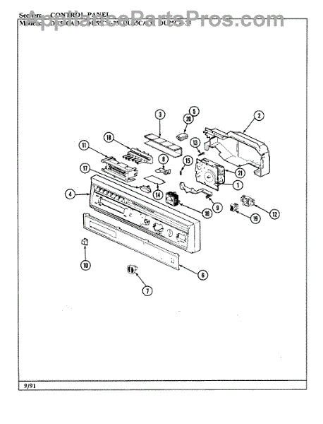 Parts for Magic Chef DU65CA-35: 01 - Control Panel Parts