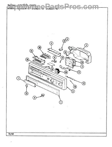 Parts for Magic Chef DU85DA-45: 01 - Control Panel Parts