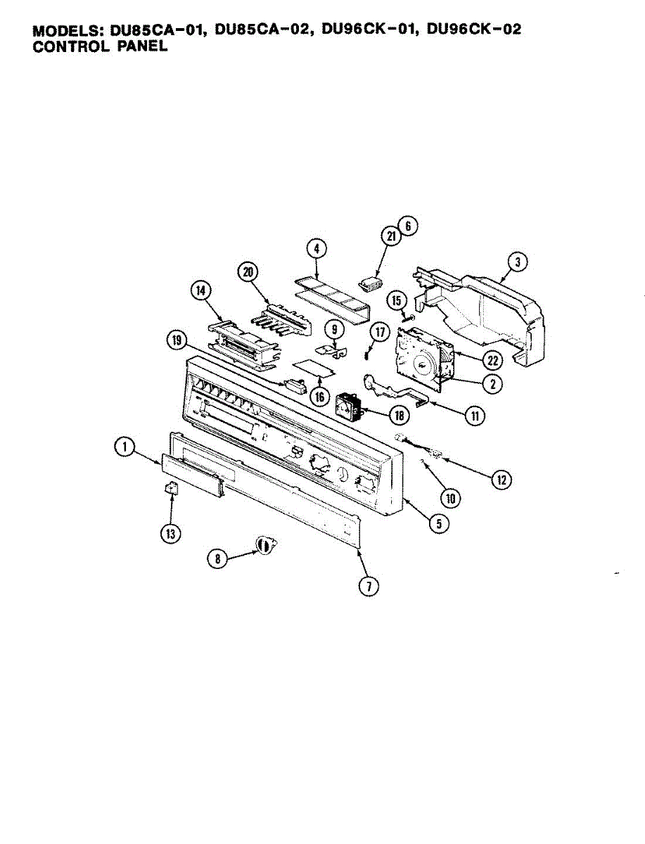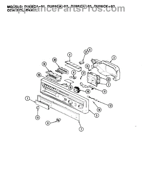 Parts for Magic Chef DU96CN-01: 01 - Control Panel Parts