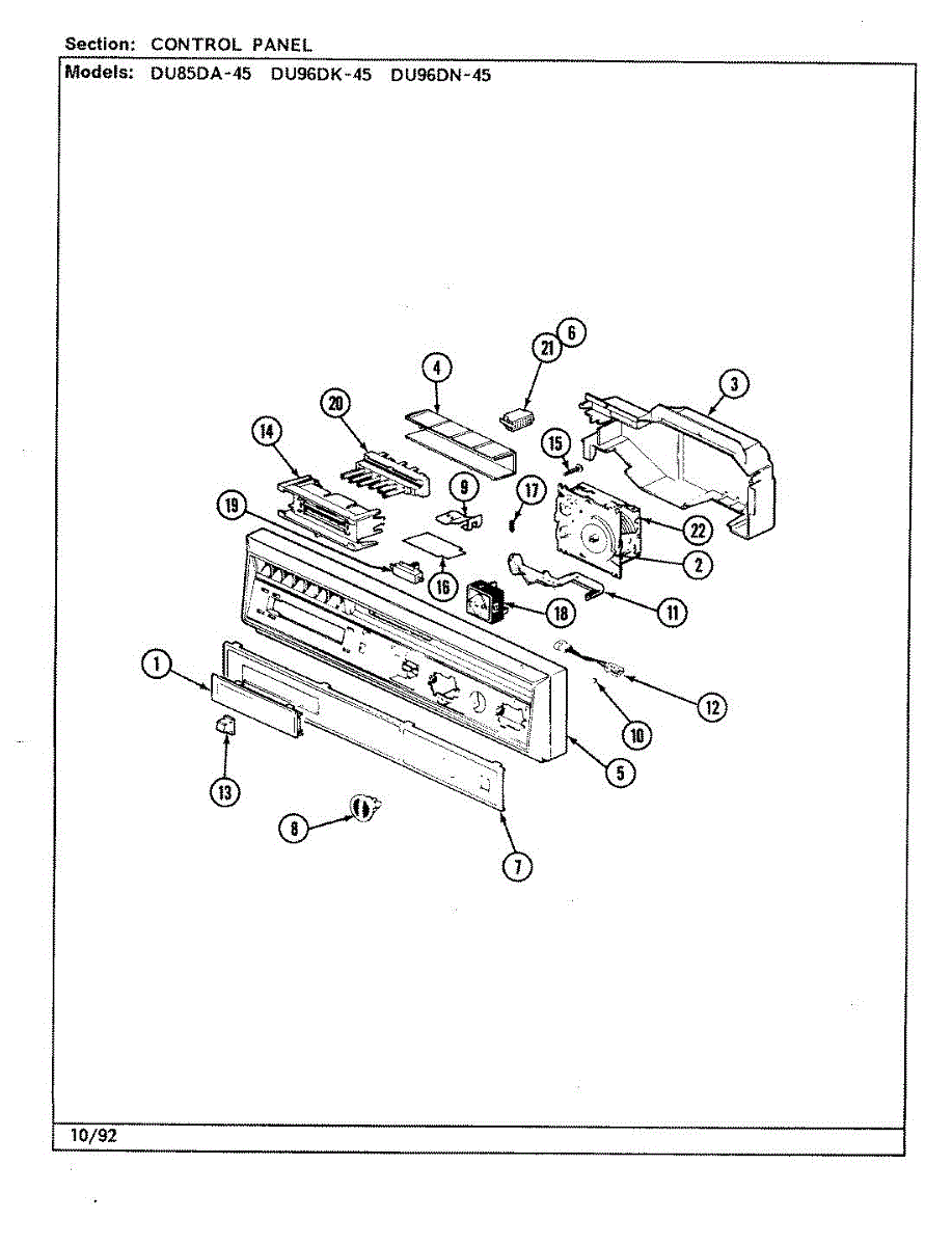 Parts for Magic Chef DU96DK-45: 01 - Control Panel Parts