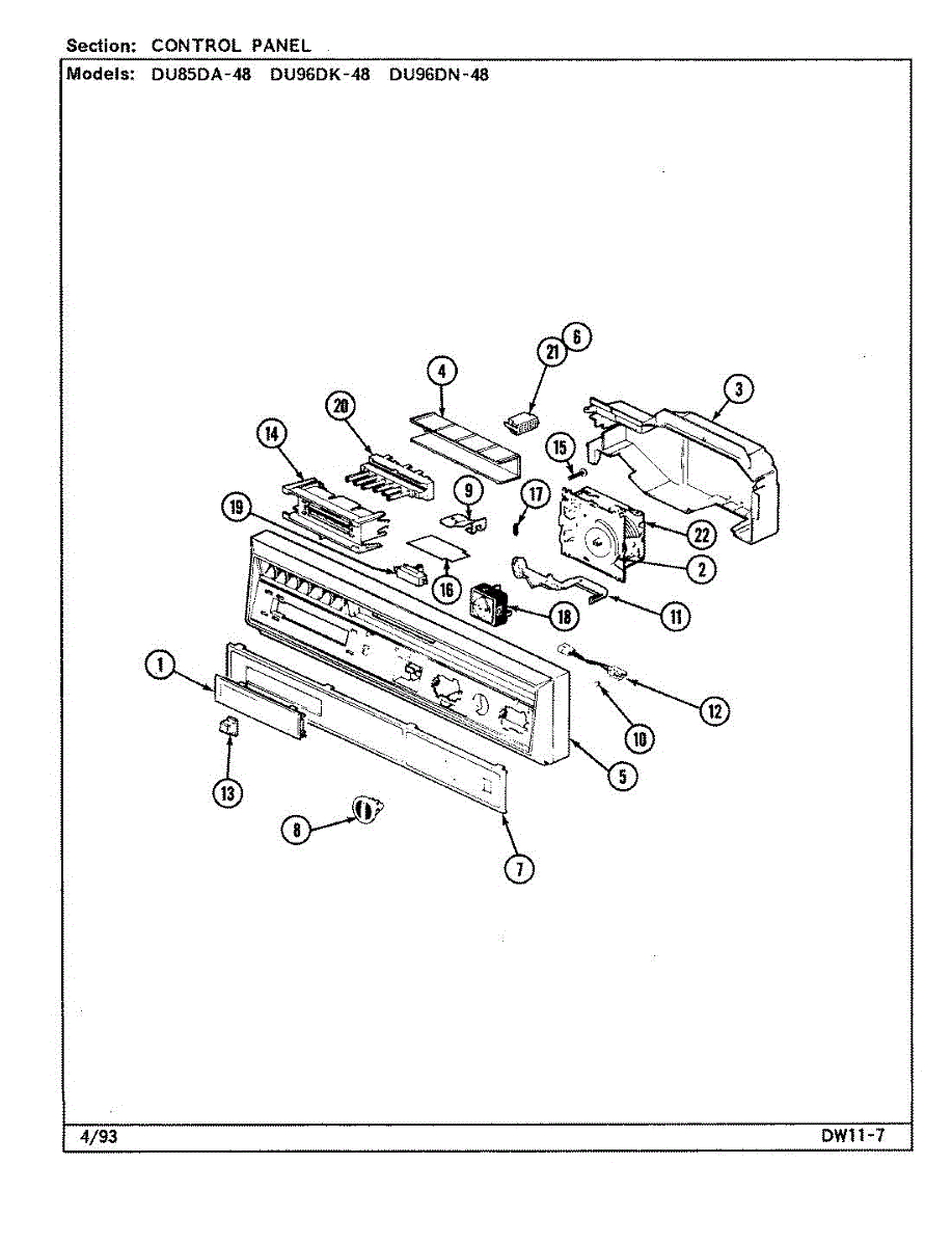Parts for Magic Chef DU96DN-48: 01 - Control Panel Parts