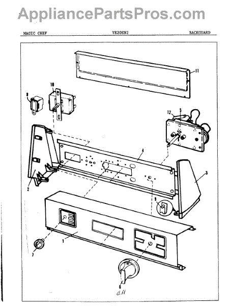 Parts for Magic Chef YE20EA1: 03 - Backguard Parts