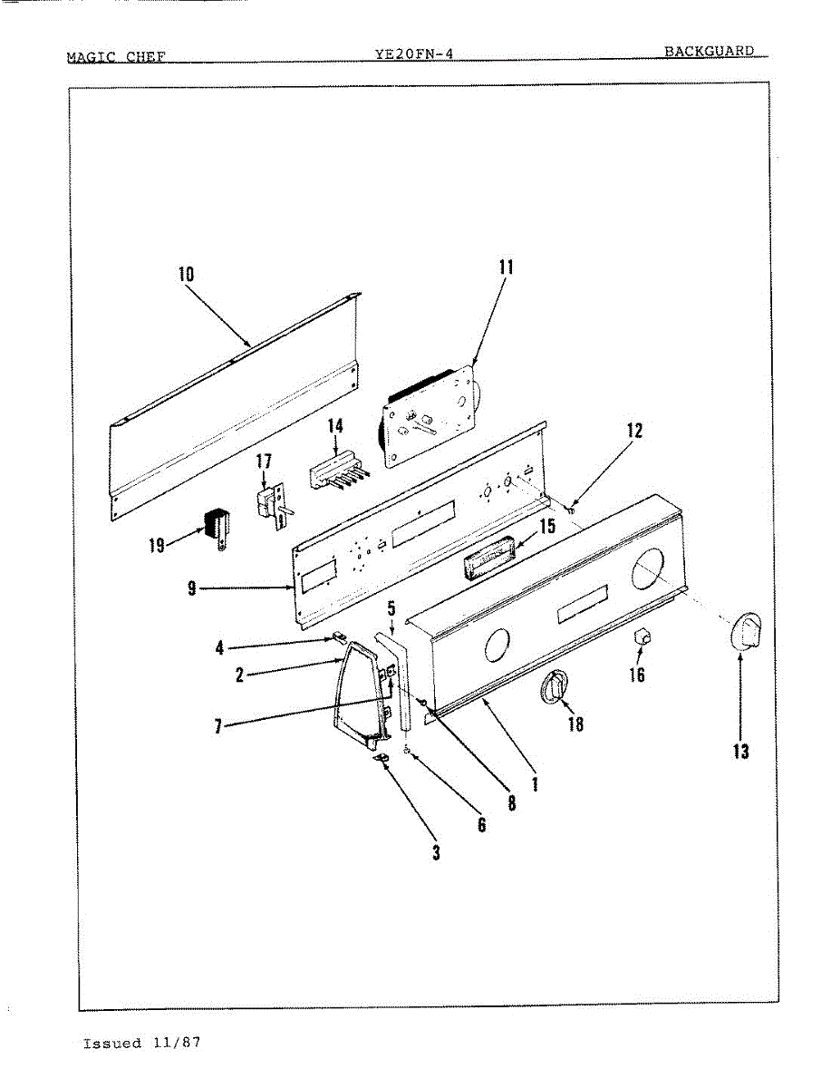 Parts for Magic Chef YE20FY4: 01 - Control Panel Parts