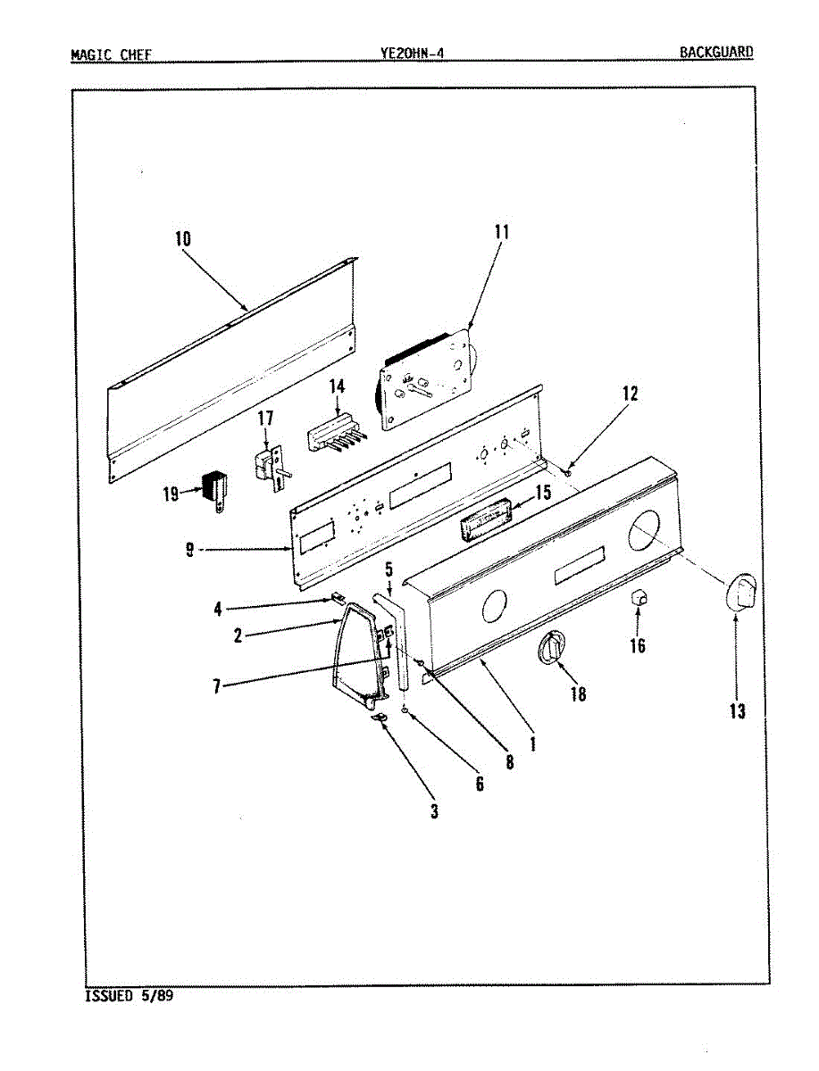 Parts for Magic Chef YE20HY4: 01 - Control Panel Parts