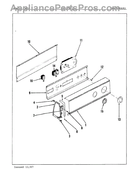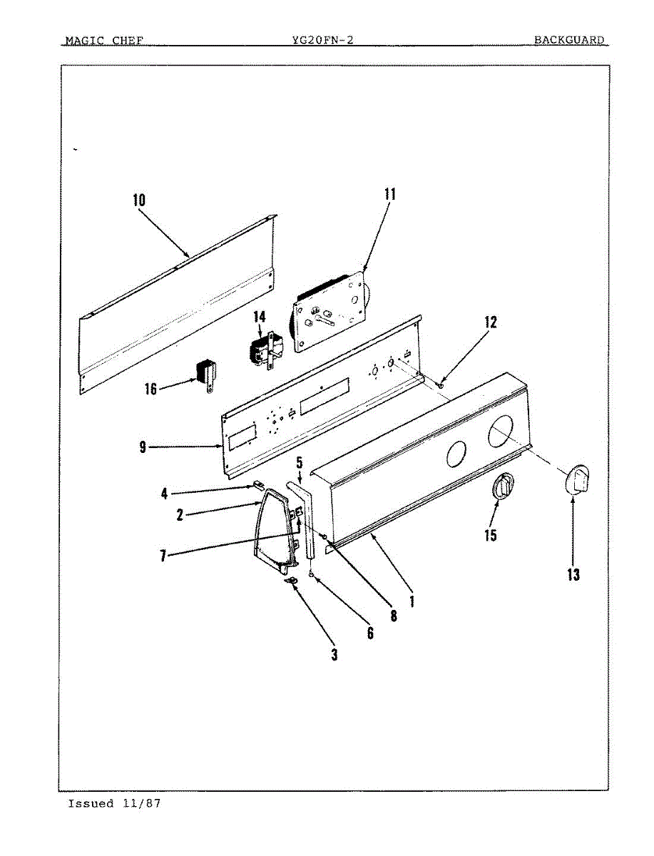 Parts for Magic Chef YG20FA2: 01 - Control Panel Parts
