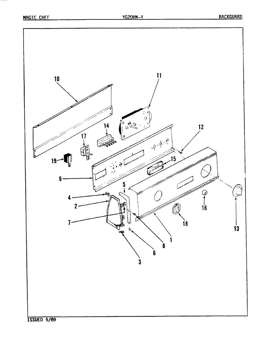 Parts for Magic Chef YG20HA4: 01 - Control Panel Parts