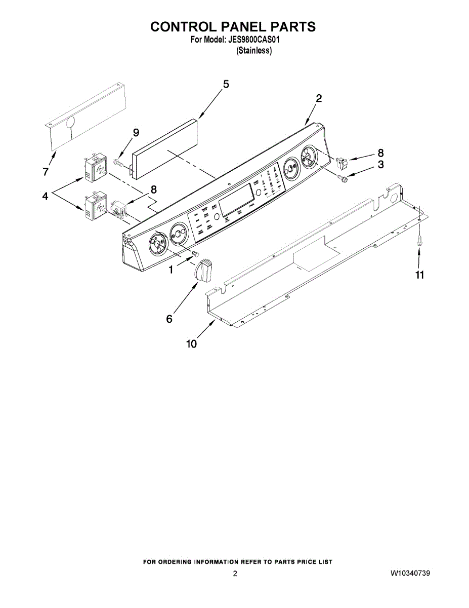 Control panel assembly for ranges. Houses display and user interface buttons. Replace when buttons wear out, stop responding, or panel is cracked or damaged.