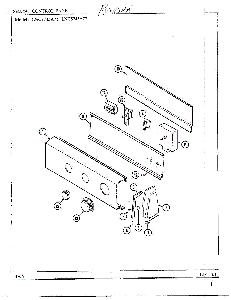 Parts for Maytag LNC-8745A71: Control Panel Parts