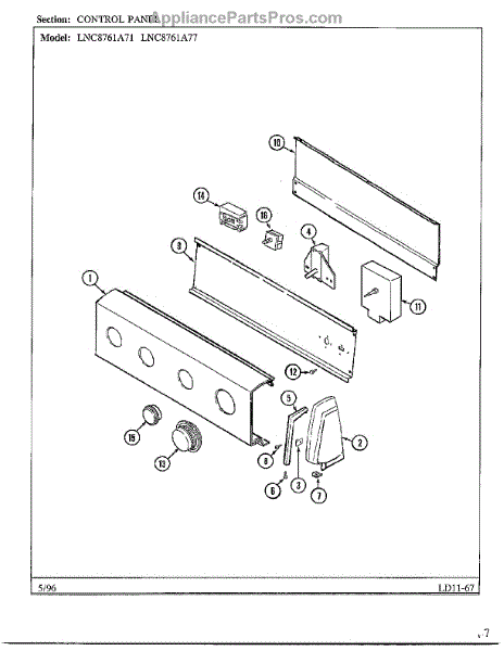 Parts for Maytag LNC-8761A77: Control Panel Parts